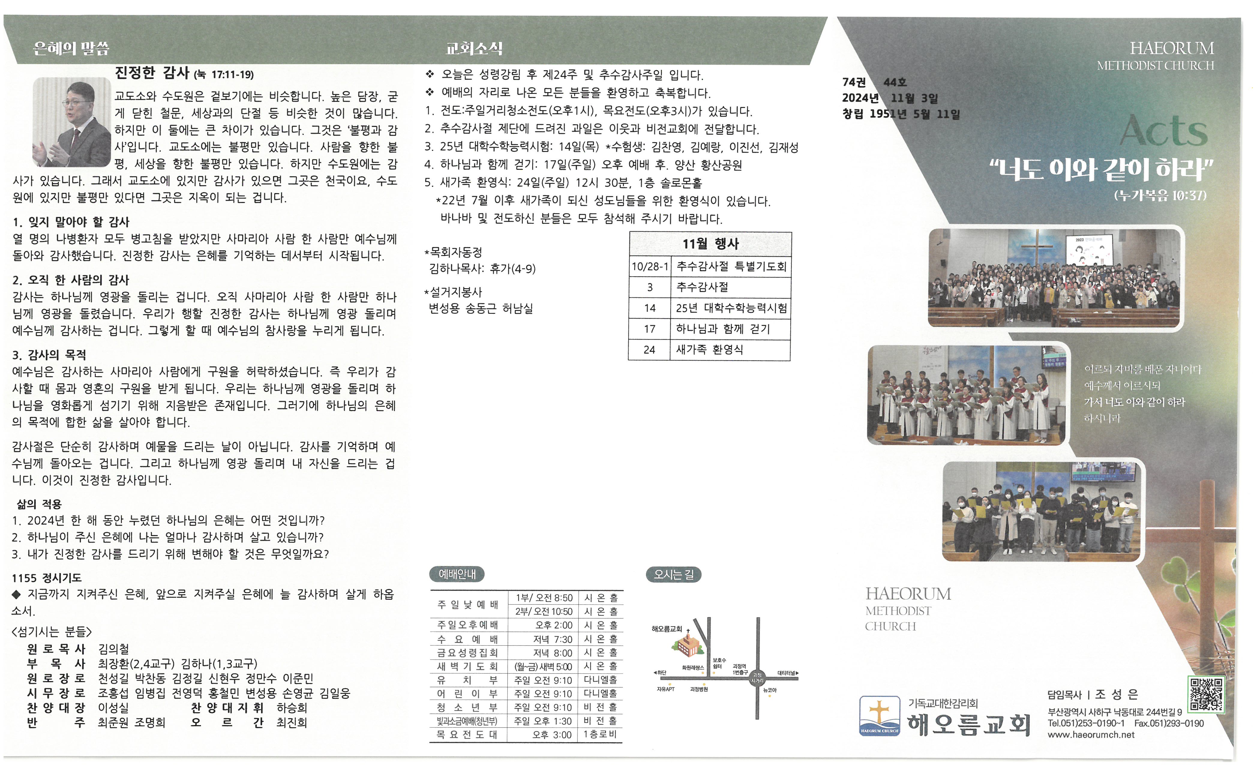 2024³â 11¿ù 3ÀÏ ±³È¸¼Ò½Ä